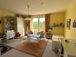 Dank großer Fenster im Wohn- und Essbereich fließt natürliches Licht in die Räume und sorgt für eine helle, freundliche Atmosphäre und der sonnige Garten erweitern den Wohnraum nach draußen und schaffen einen harmonischen Übergang zwischen Innen- und Außenbereich. Die angrenzende Küche mit Essecke bietet genug Platz. Zudem umfasst das Erdgeschoss ein zusätzliches Zimmer, das beispielsweise als Arbeitszimmer genutzt werden kann, sowie ein Gästebad mit Fenster.
